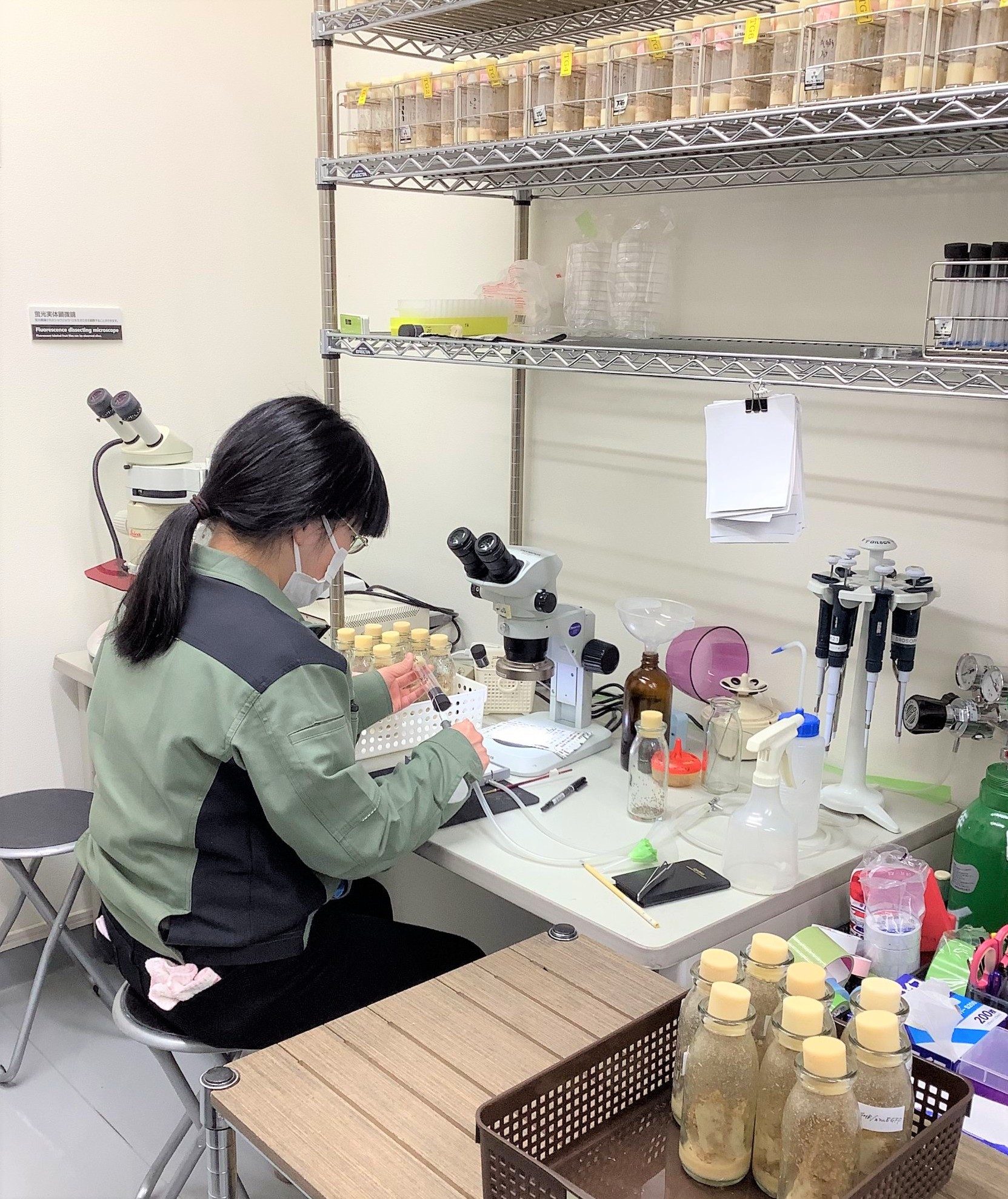 元々は害虫を駆除する会社ですが、「駆除するだけでなく、研究などに有効活用できないか」という発想から、約20年前にこの取組を始めました。また、人とショウジョウバエは遺伝子の約75%が共通していることや、近年は実験動物のコストや倫理面の課題もあり、その代替モデルとしてショウジョウバエに注目しました。ショウジョウバエの寿命は2週間と短いので、短期間で結果を得ることができ、飼育も容易です。海外ではこうした研究が先行していますが、日本ではまだまだ前例が少ない分野です。その分、当社としては事業領域の大きい分野であり、将来への投資として、長年積み重ねてきた知見がある点は、他社にない強みだと考えています。